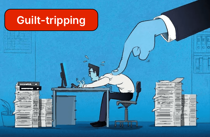 Toxic environments use guilt to extract more work for less pay, creating a culture of fear. Employees facing disproportionate blame for minor errors may suffer from eroded morale and self-confidence, hindering productivity and creativity.